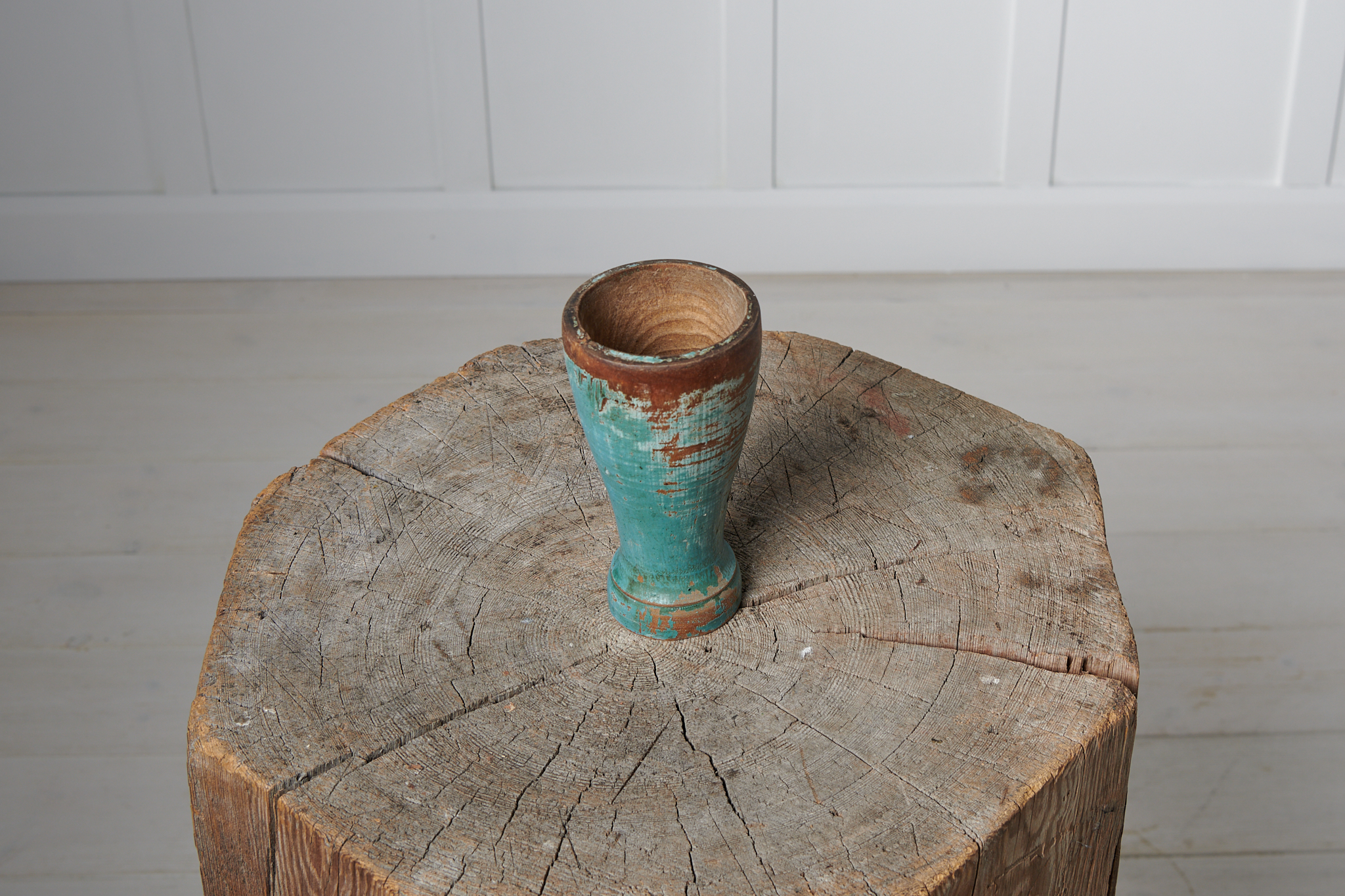 Antique folk art mortar from Sweden made during the mid 1800s. The mortar is in untouched original condition with original paint. It has some traces and marks of use as well as authentic distress.