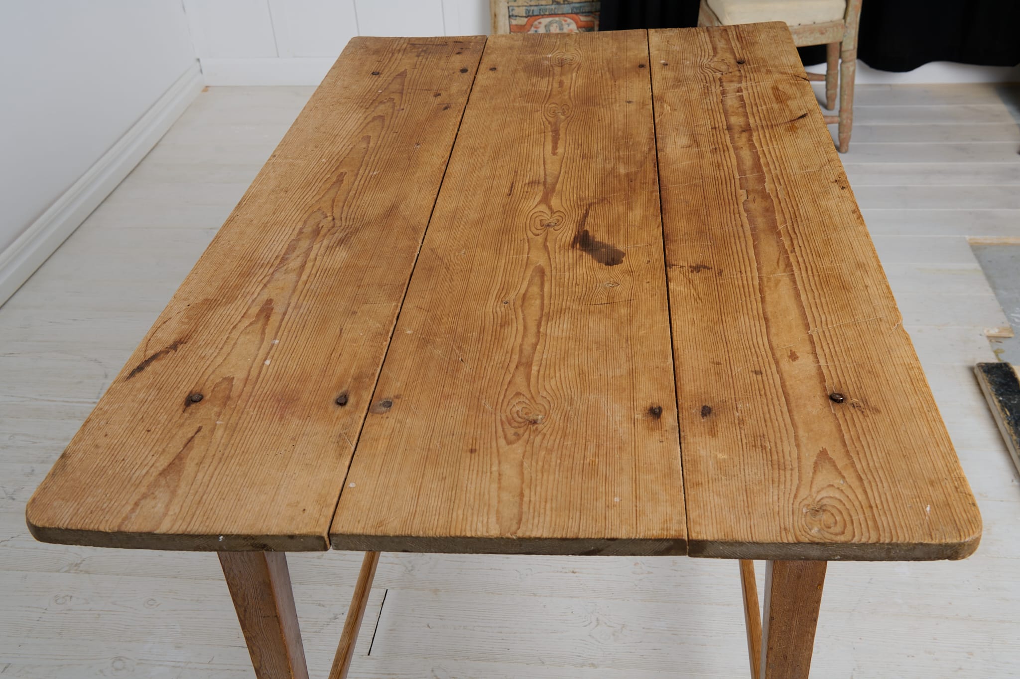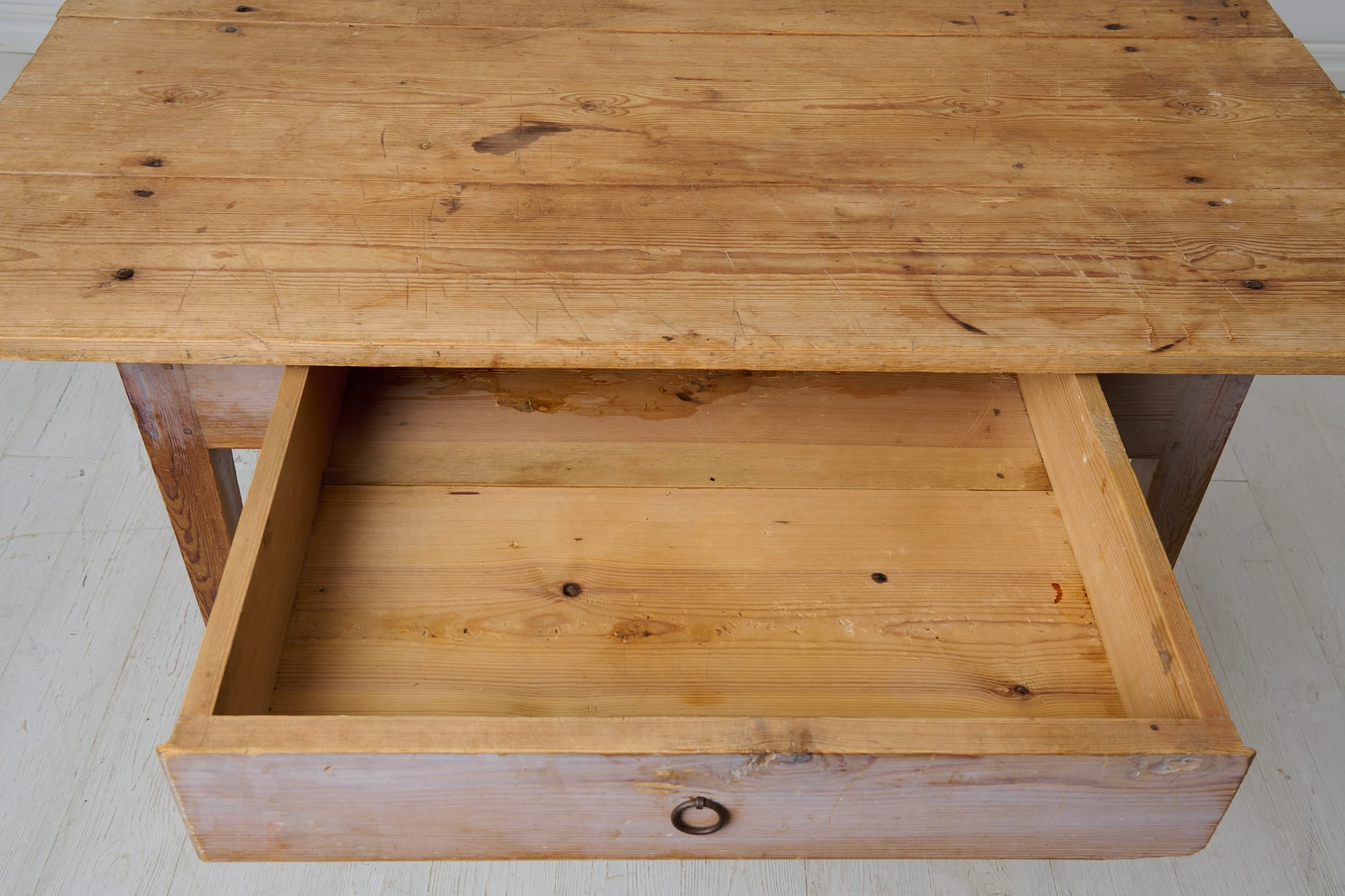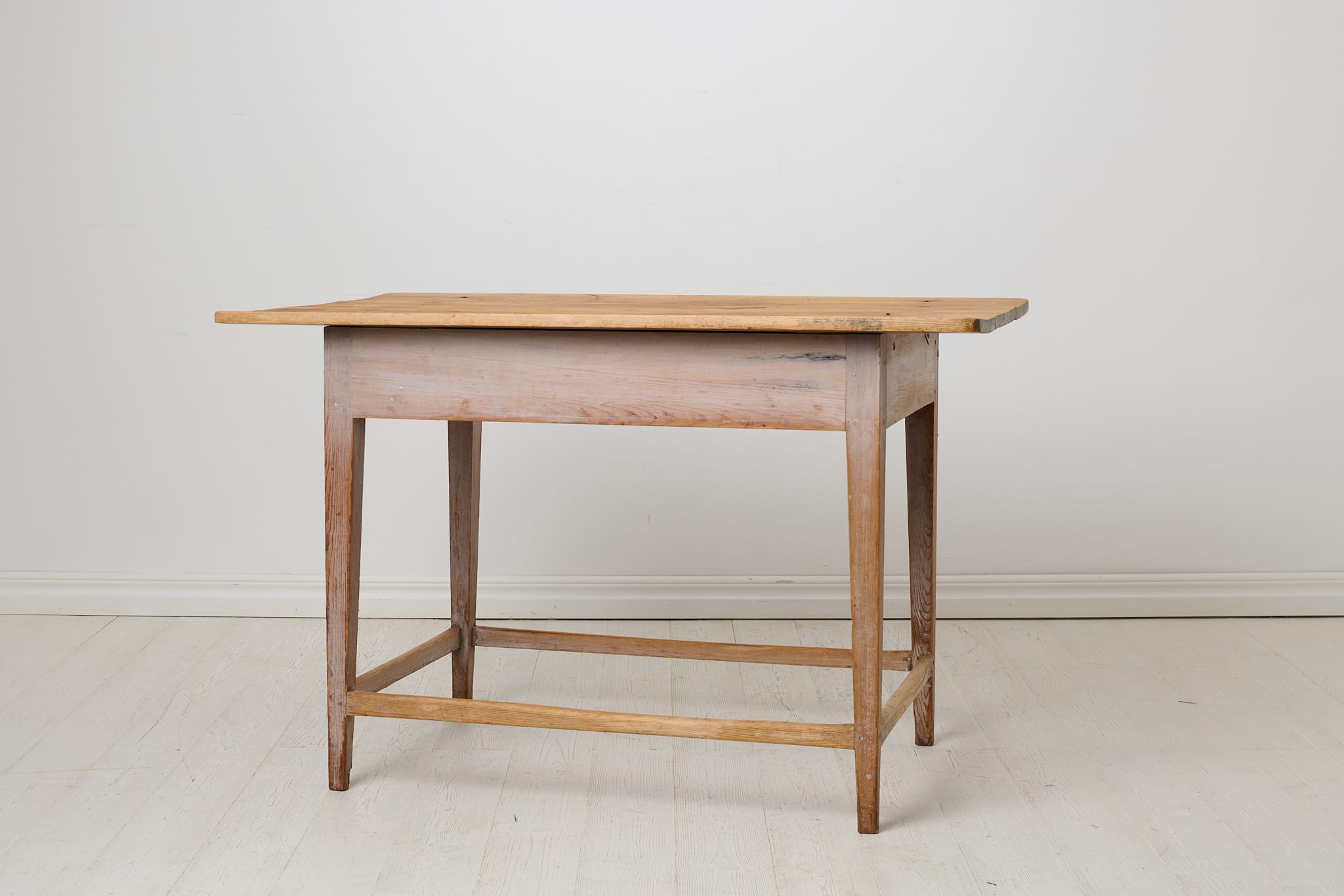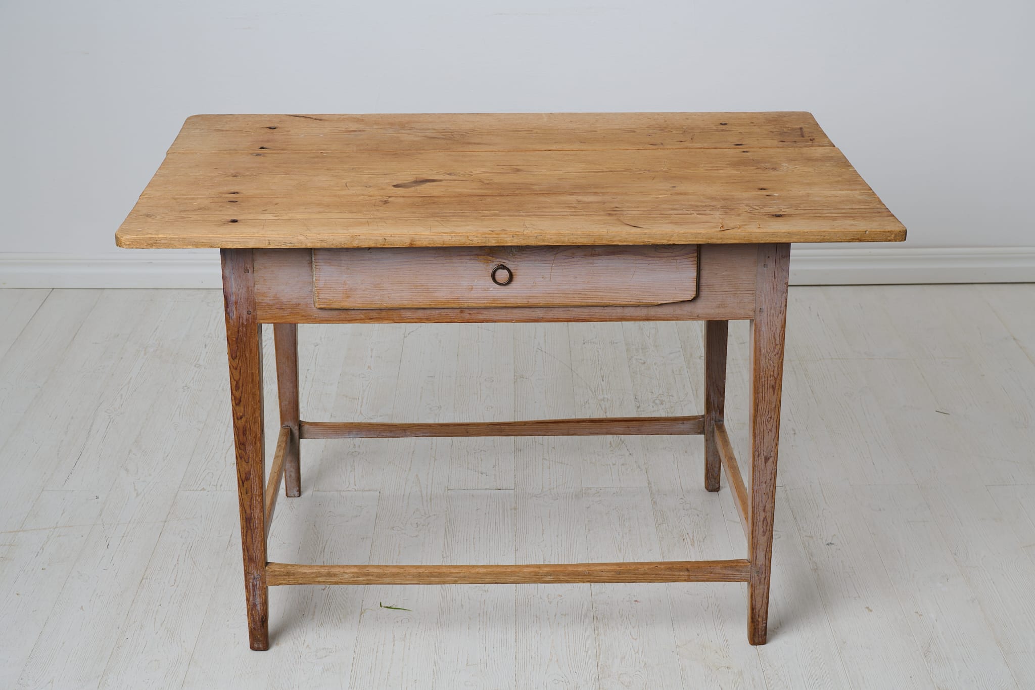 Antique Swedish country table in untouched condition. The table has a drawer and straight legs as well as original paint that shows the age and history of the piece. Charmingly worn with attractive patina. Made by hand in Sweden around 1820. Healthy and stable frame.