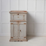 The sideboard has a double door at the bottom which opens to two shelves. It is in untouched original condition with the original first white paint which has gained a charming patina and distress after 200 years of use. The doors have the original lock and key and they are in working condition. The sideboard is 54 cm wide including the moulding.