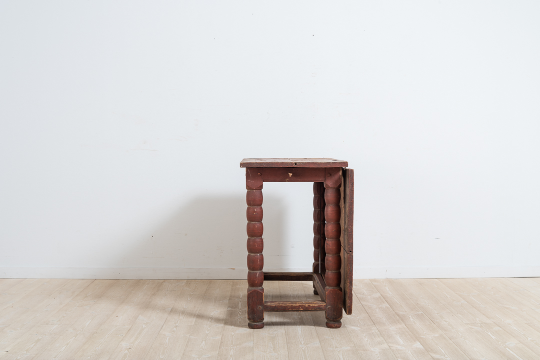 Baroque drop leaf table with one foldable table top. Original condition with red original paint. nice untouched patina. Typically placed against a wall or in front of a window. Northern Sweden around 1760. The wood is healthy and the frame is solid and stable.
