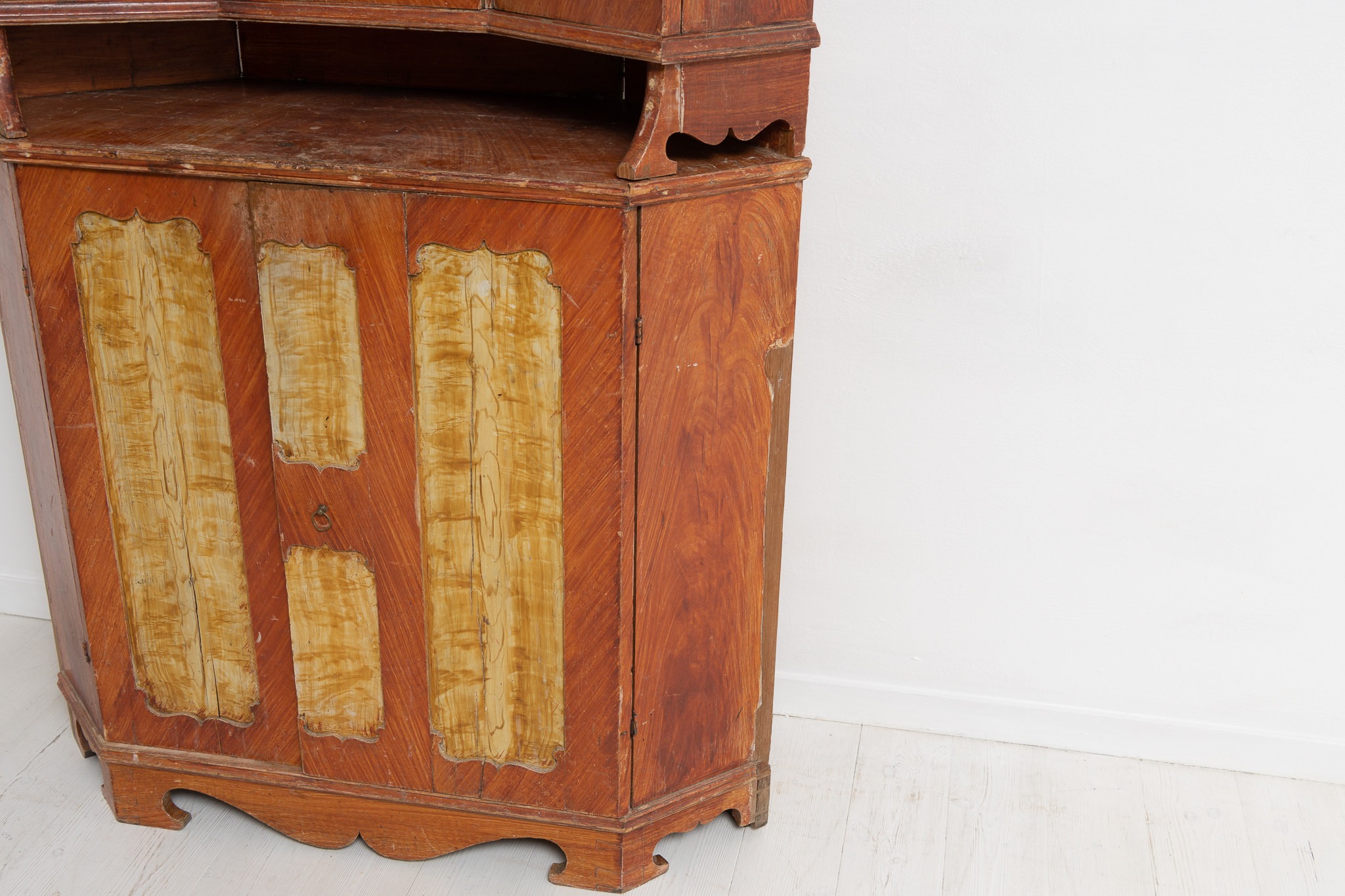 The outmost edges of the lower cabinet are not painted as the cabinet has been standing against a wall with a panel. Healthy and solid. The upper and lower cabinet measures 137 cm and 85 cm in height respectively.