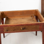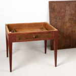Gustavian style country table from Hälsingland in Northern Sweden. The table is from the years around 1820 to 1830 and in untouched original condition with genuine wear and patina. Original faux paint from the 1820s imitating mahogany. The condition of the table is the authentic result of 200 years of use. Healthy and solid frame. Original brass handle to the drawer. Height to rim is 55 cm.