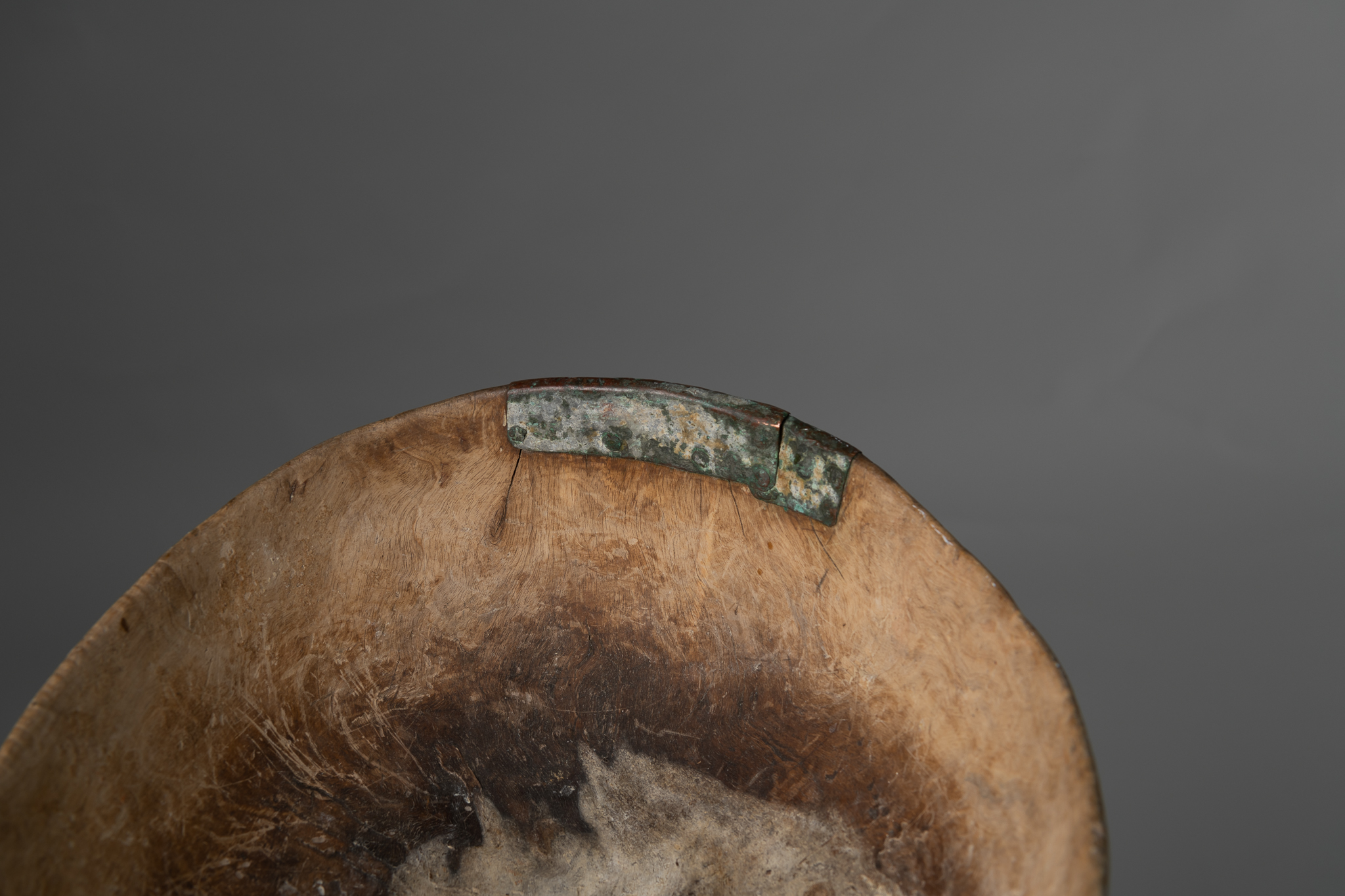 Large oval antique bowl in wood with the original red paint on the outside. Monogram and dating 1833 underneath. The bowl has an authentic patina after almost 200 years of use and is in good antique condition consistent with the age. It has some traces of use. Bowls like this were household items used for storage and preparation of food. They are therefore rare to find preserved, especially in such good condition. One of the corners has an older repair – see pictures. Smaller dry crack underneath.
