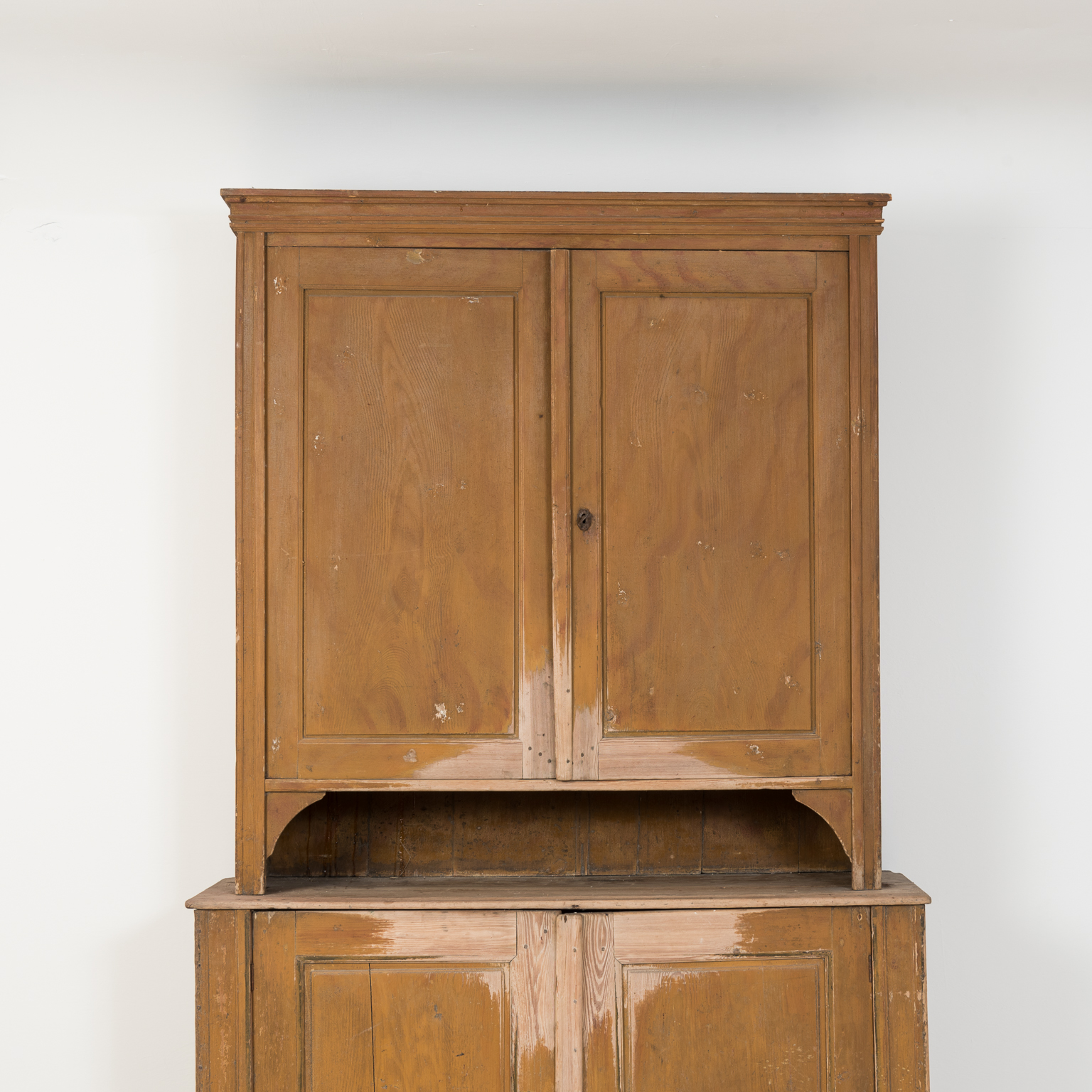 Gustavian cabinet in two pieces. The cabinet has a charming patina with completely untouched surfaces from the late 1700s and original paint. Smaller loss of material by the bottom cabinet’s doors but nothing that affects stability or function. Manufactured in northern Sweden during the late 1700.