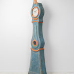 Genuine antique long-case clock from northern Sweden. The clock is made around 1820 with a very well-made and elegant case in painted pine. The paint is the first original paint and it’s in an unusual colour scheme. Distress and patina after use. A very unusual detail is the small painted clock face at the top of the head, see picture. Healthy and solid frame. The clock comes with the original clock mechanism, weights and pendulum. The paint on the clock face itself has slightly cracked, see picture.