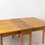 The middle section of the table tops is more worn and the paint is more distressed because the table would usually stand with the extra table tops folded down in front of a window. The extra tops were then folded up and used during meals. The mid section is 38 by 118 cm and each extra top is 67 cm making the total width 172.