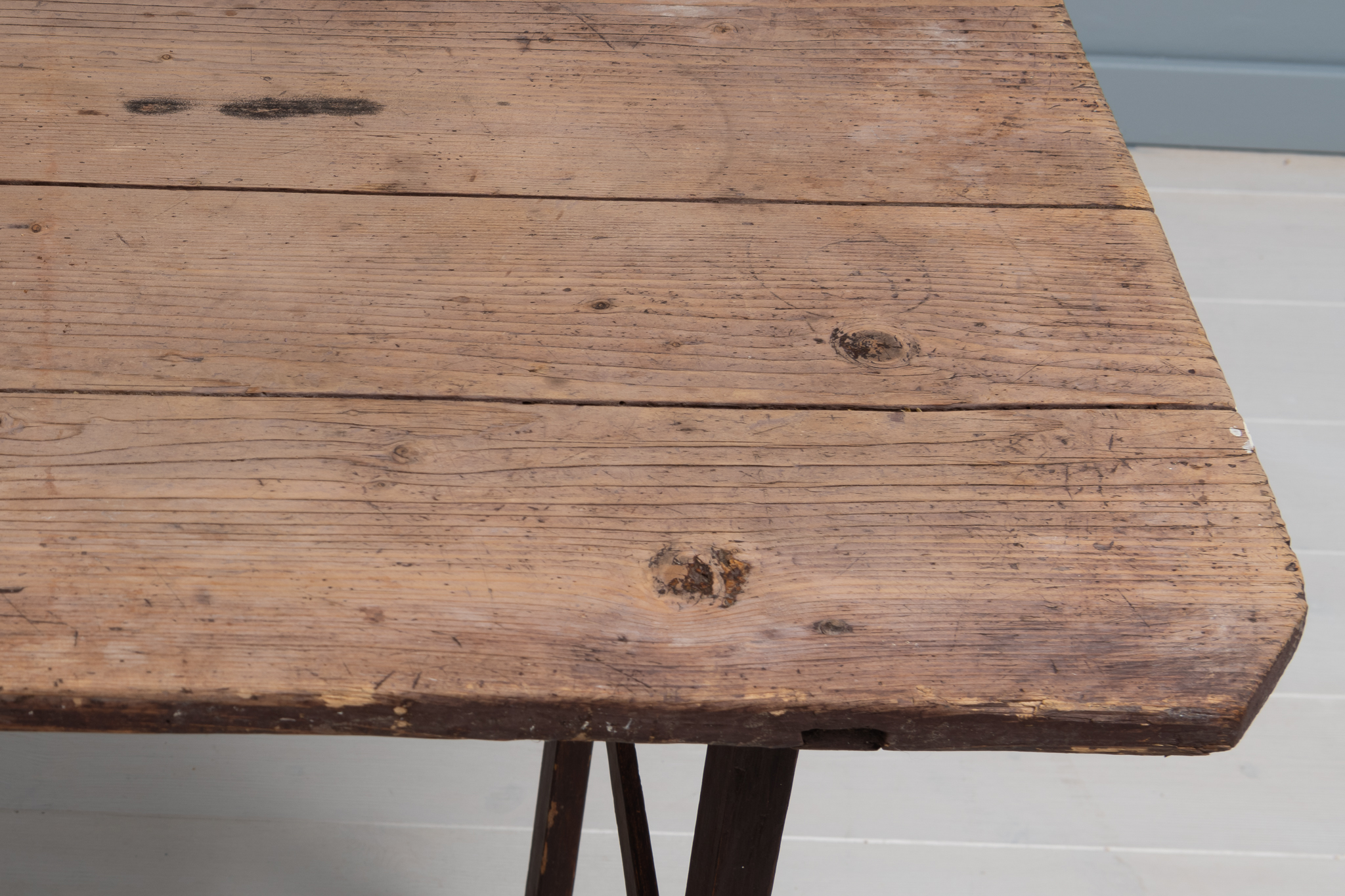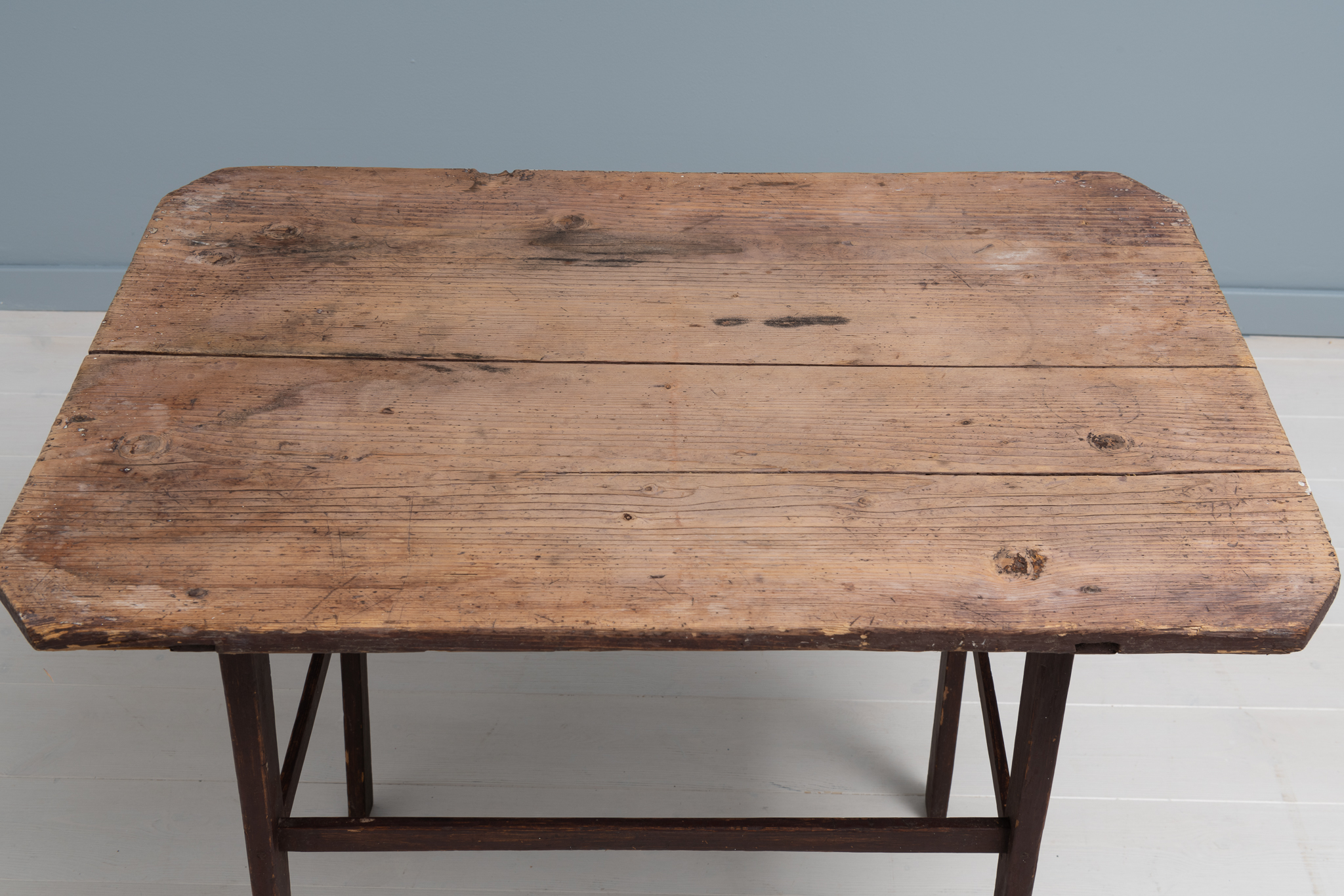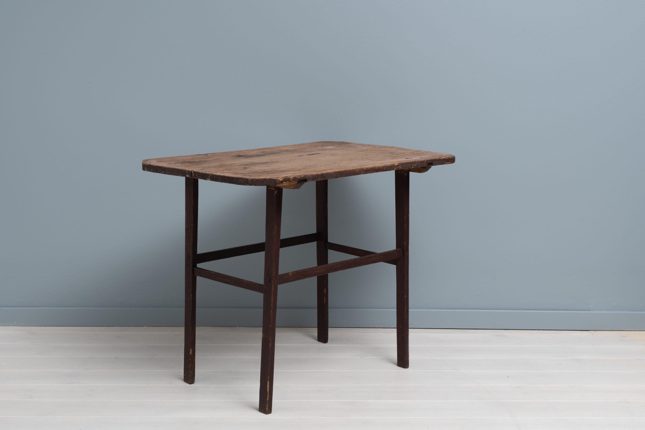 The frame is painted. Also make note that the table top consist of only two wide boards of wood. The whole table is hand-made and has an unusually straight and simple construction which is almost modern, despite the table being over 200 years old. This is a table that was made to be used without any unnecessary decorations. Which is also why it’s so rare to see one today in such good condition.