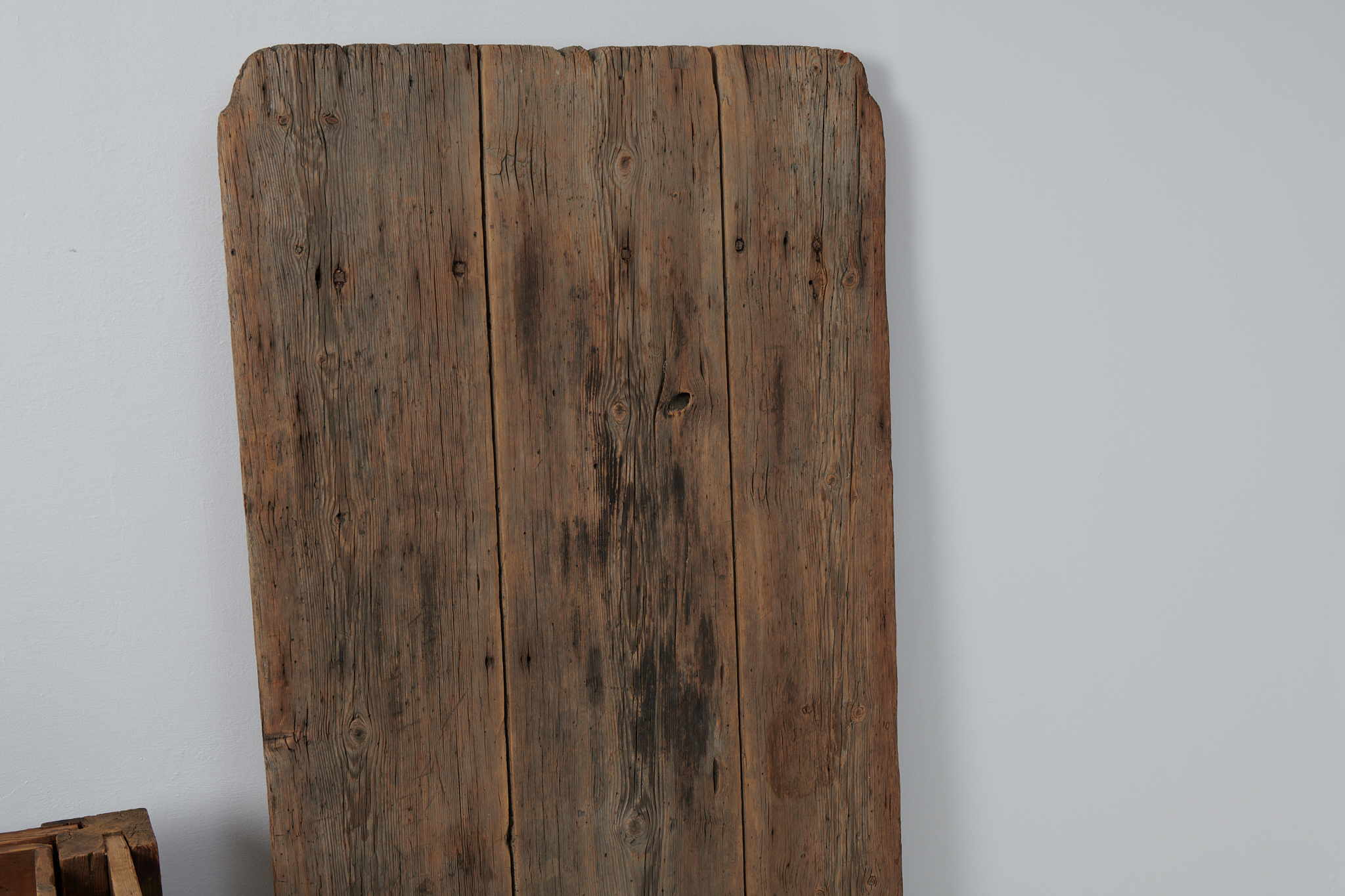 Unique Swedish baroque table made by hand during the mid 1700s. The table is a very rare example of early Swedish furniture and has a frame in pine with heavy, solid lathed legs. The table has a fantastic patina as the surface has been left untouched and been allowed to age naturally for almost 300 years. Due to the age the wood has taken on a grey tone and groved surface. The table top is made of only 3 solid boards of wood. The table top is also loose and can be lifted off the leg frame. Original hand-made drawer pull to the drawer in iron. This is a heavy and solid table that has history and heritage written in every line and groove.